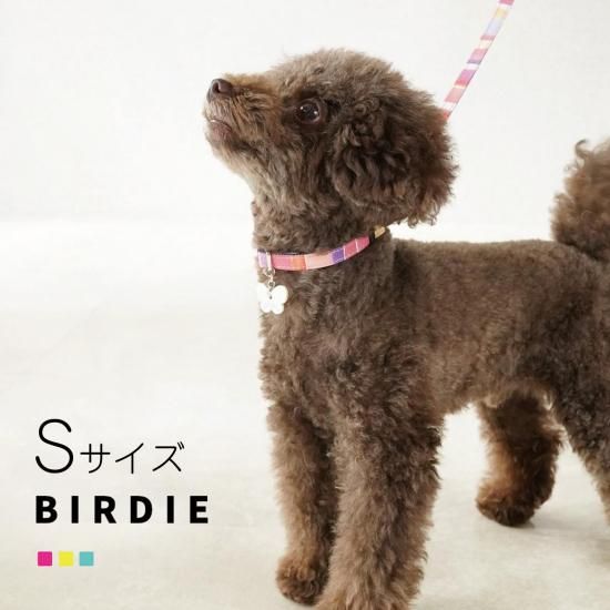 BIRDIEオリジナル汚れを防ぐ加工を布地に施したボーダー柄と蝶々のチャームが可愛くて誰からも愛される超小型犬〜大型犬種対応タイプの上質な首輪。