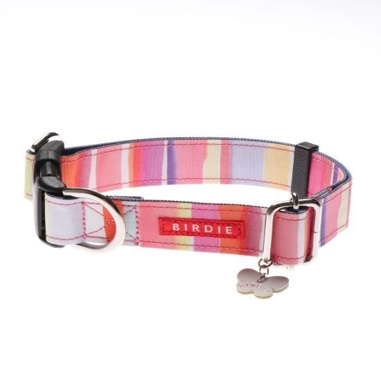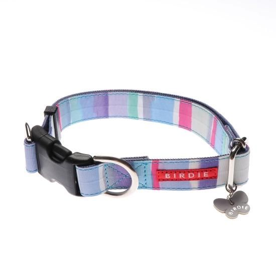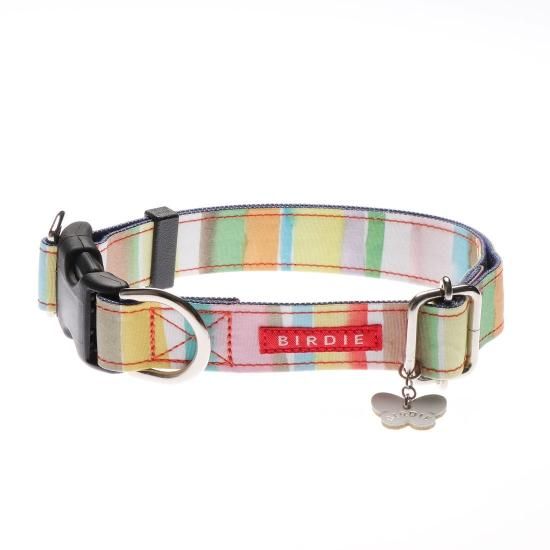 BIRDIEオリジナル汚れを防ぐ加工を布地に施したボーダー柄と蝶々のチャームが可愛くて誰からも愛される超小型犬〜大型犬種対応タイプの上質な首輪。