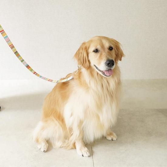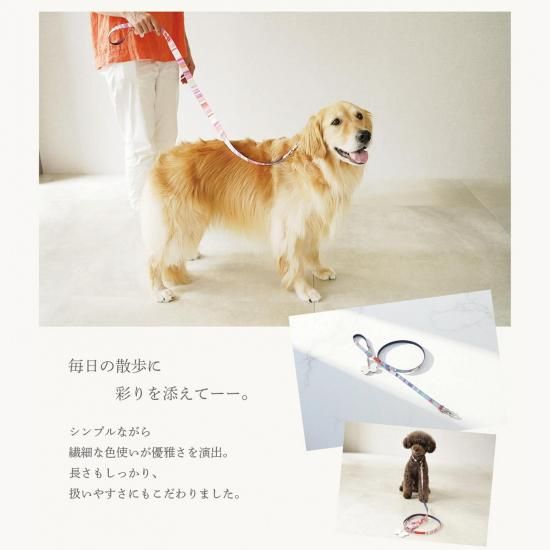 カジュアルなコットン製のリードは引っ張られても手が痛くなりにくく短くまるめて持つときにも便利です。