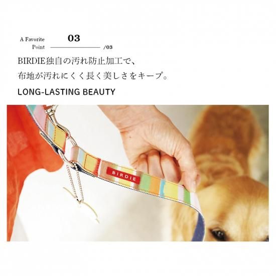 BIRDIEオリジナル汚れを防ぐ加工を布地に施したボーダー柄と蝶々のチャームが可愛くて誰からも愛される超小型犬〜大型犬種対応タイプの上質な首輪。