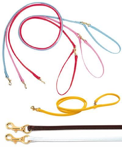 ソフトレザー仕様のまるめ革仕立てのリード。
