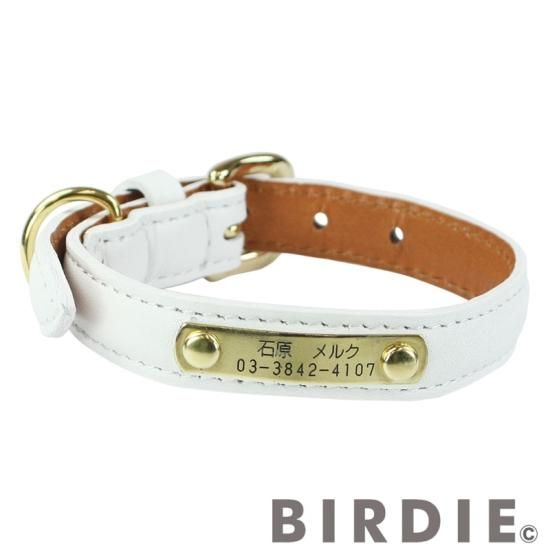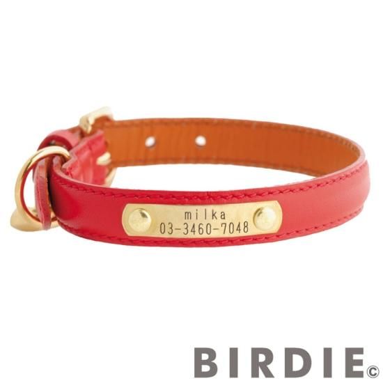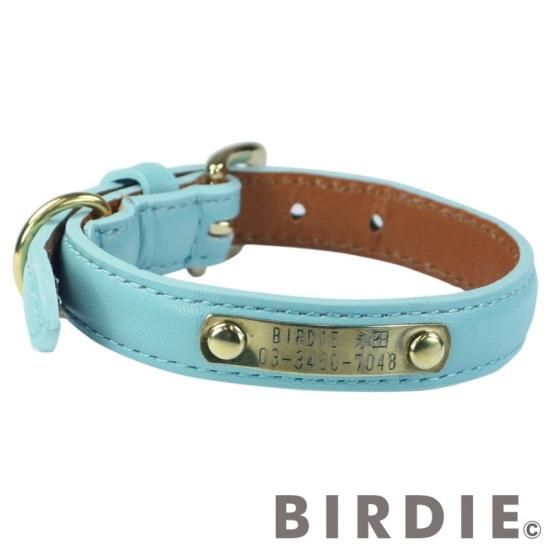 BIRDIEのロングセラー品、名前と電話番号が刻印できるネームプレート付の首輪です。