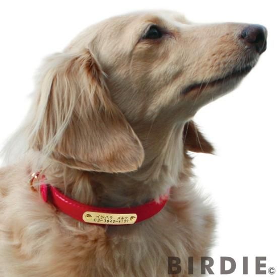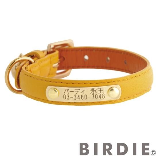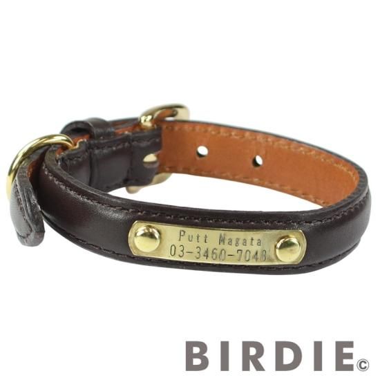 BIRDIEのロングセラー品、名前と電話番号が刻印できるネームプレート付の首輪です。
