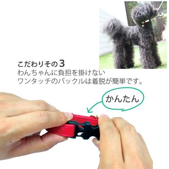 こだわりその3・わんちゃんに負担を掛けないワンタッチバックルは着脱が簡単です。