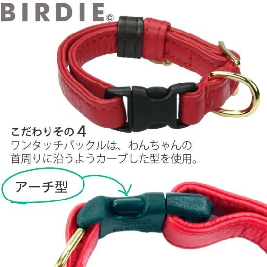 こだわりその4・ワンタッチバックルは、わんちゃんの首周りに沿うようカーブした型を使用。